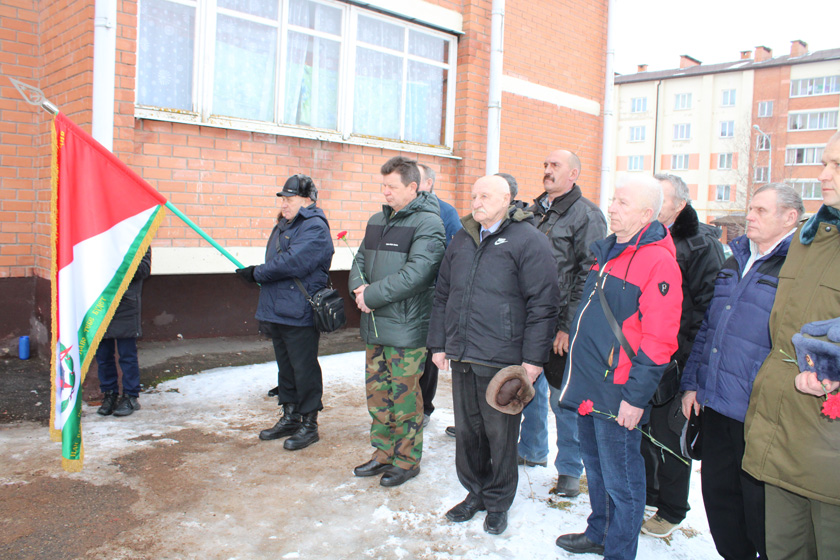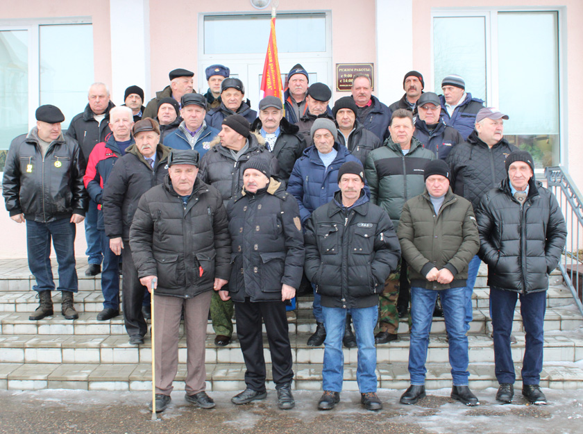 Былы старшыня раённай арганізацыі ГА “Беларускі саюз ветэранаў вайны ў Афганістане” Мікалай Шчарбіцкі расказаў пра арганізацыйныя змяненні і прадставіў новага кіраўніка арганізацыі Васіля Карпушэнку. Начальнік адасобленай групы Шумілінскага раёна Бешанковіцкага АРВК падпалкоўнік Андрэй Собін падзякаваў Мікалаю Шчарбіцкаму за актыўную грамадскую работу і ўручыў грамату.