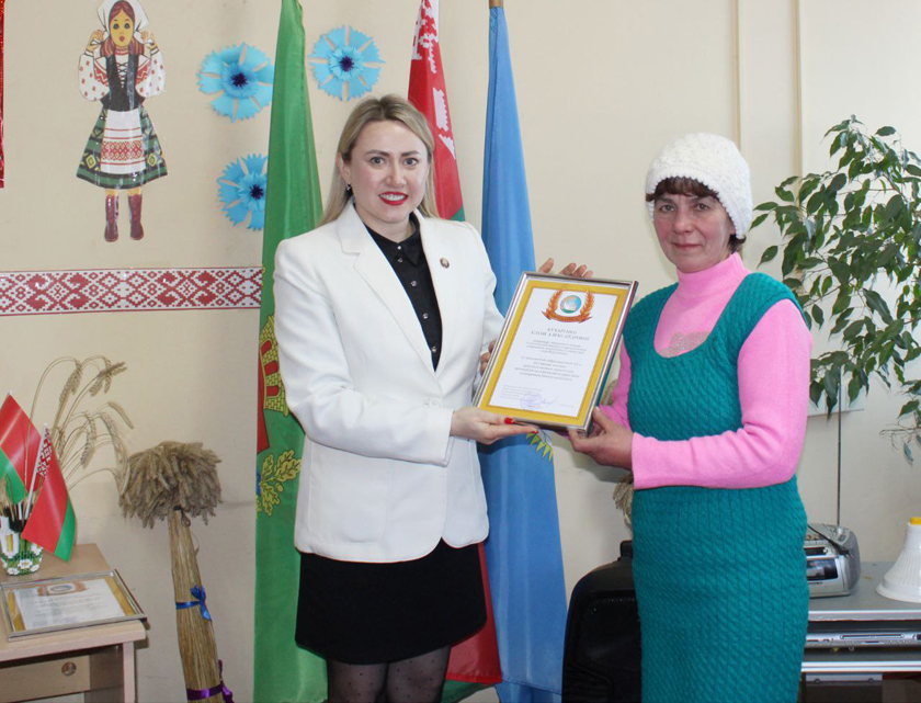 Старшыня райкама работнікаў АПК Вольга Пусянкова ўручыла падзякі за добрую работу аператарам машыннага даення Ірыне Лісоўскай і Алене Лісоўскай, бухгалтару Вользе Самуйлавай і маладому механізатару Аляксандру Куракову.