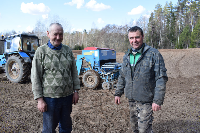 Дарога нас прывяла прама да патрэбнага ўрочышча. Тэхніка ўдалечыні, таму ідзём з кіламетр, апрабоўваючы гумавымі ботамі глебу – у асноўным яна рассыпчатая, а ў нізінках яшчэ даволі сырая. «На МТЗ з сеялкай “Лемкен” не буксую, дажджоў жа вялікіх не было, – кажа механізатар Васіль Аглушэвіч, які мае каля дзясятка гадоў стажу на пасяўной. – Выехаў на першыя палеткі ў Чэрчыцах сёлета рана – 20 сакавіка. У бункер сеялкі засыпаю па 350 кілаграмаў насення. Паколькі засяваю за дзень па пятнаццаць гектараў, то майму калегу Віктару Маруцьку прыходзіцца запраўляць сеялку разоў па дзесяць, а то і больш». Дарэчы, Васіль Аглушэвіч у час жніва, як і кожны год, будзе задзейнічаны на ўборачнай. Што пасее – тое і ўбіраць будзе на камбайне. Механізатар валодае ўсім сельскагаспадарчым працэсам – ад першай баразны да намалочанай тоны.