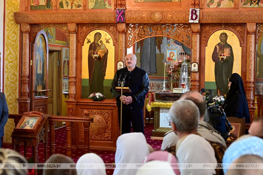 Глава государства начал свою речь в храме с благодарности в адрес представителей духовенства за то, что они делают в государстве: «Особенно вот эти храмы, церкви и церквушки, которые находятся не в центре Беларуси, а подальше от Минска. Именно вы делаете наших людей настоящими. Настоящими и искренними белорусами».