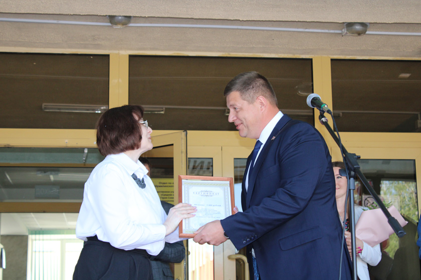 В Шумилинской СШ №1 поздравить выпускников с окончанием учёбы и пожелать им успехов в дальнейшей жизни пришёл председатель Шумилинского райисполкома Сергей Галынчик.