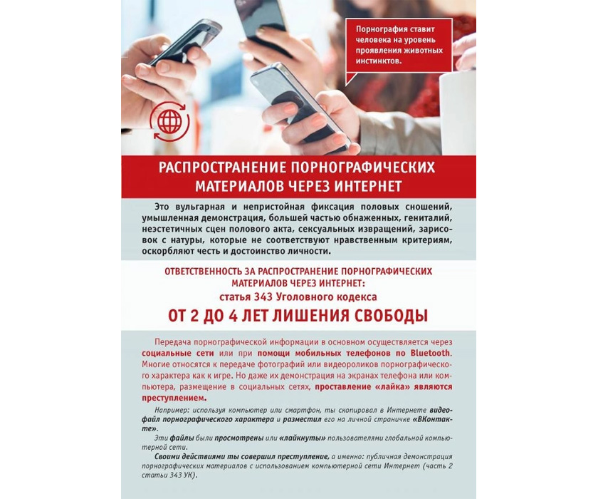 Супрацоўнікі РАУС неаднаразова папярэджвалі, што за распаўсюджванне парнаграфічных фота і відэа пагражае крымінальная адказнасць. Але ж не ўсе прыслухоўваюцца да гэтых рэкамендацый і не ўсе вучацца на чужых памылках.
