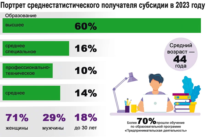 Субсидия предоставляется безработным, достигшим 18-летнего возраста, при отсутствии у них нарушений, если они в течение одного месяца со дня регистрации в качестве безработных не смогли трудоустроиться на подходящую работу или зарегистрировались в качестве безработных после прохождения профессиональной подготовки, переподготовки, повышения квалификации по направлению органов по труду, занятости и социальной защите.