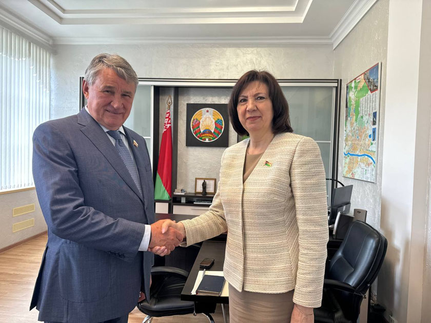 Состоялась рабочая встреча председателя Совета Республики Натальи Кочановой и заместителя председателя Совета Федерации Юрия Воробьева. Об этом БЕЛТА сообщили в пресс-службе верхней палаты парламента.