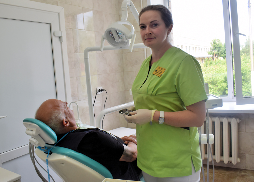– Зразумела. Два гады таму ў кабінеце быў зроблены капітальны рамонт, закуплены сучасны стаматалагічны комплекс. Калі раней у райцэнтры пацыенты маглі разлічваць толькі на металічную канструкцыю зубоў, то зараз і на сучасную, эстэтычную і прыгожую металакераміку. Прычым, аздзначу, за кошт таго, што ў нас раённая паліклініка, паставіць адзінкавыя штучныя зубы або здымныя пратэзы ў Шуміліне дзешавей, чым у горадзе.