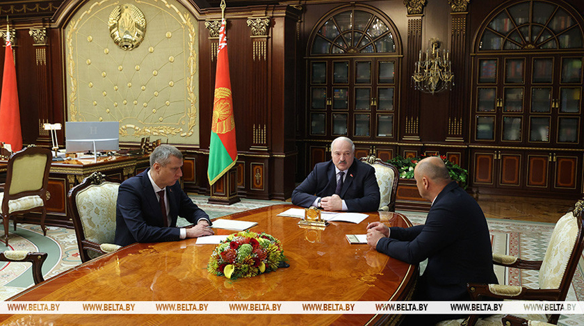 Президент Беларуси Александр Лукашенко 2 июля принял с докладом главу Администрации Президента Дмитрия Крутого и Чрезвычайного и Полномочного Посла Беларуси в России Александра Рогожника, передает корреспондент БЕЛТА.