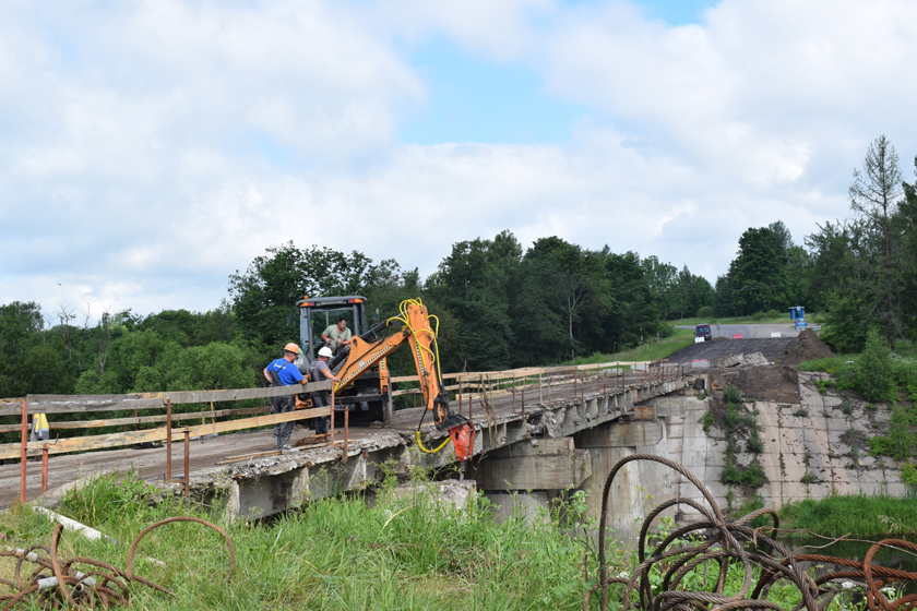 Падчас нашага прыезду тут працавалі віцебскія і шумілінскія дарожныя рабочыя. «Пачалі работы 4 чэрвеня, – расказаў прараб мостабудаўнічага ўпраўлення № 5 ААТ «Мостабуд» Віктар Прыхожы. – Па праекце прадугледжана замена дзвюх крайніх бэлек моста, іх мы ўжо дэманціравалі. Але нашы спецыялісты паглядзелі, што трэба мяняць і астатнія чатыры бэлькі. Ці будзе гэта зроблена, пакажа на днях экспертыза».