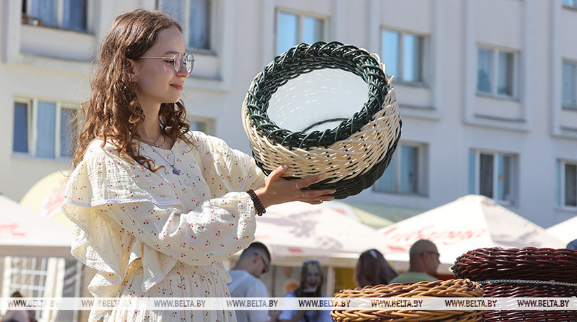 Сегодня начал работу излюбленный гостями и участниками масштабного форума искусств «Город мастеров», у которого есть уже постоянная и узнаваемая прописка — культурно-исторический комплекс «Золотое кольцо города Витебска «Двина». В ярких палатках привлекают внимание ониксовые фигурки из Пакистана, сувениры из керамики, посуда из дерева, всевозможные украшения, изящные плетеные растения из бисера, текстильные, шерстяные, кованые изделия, поделки из соломки, бересты, лозы, глины, кожи, игрушки — вязаные, шитые, валяные из шерсти. Здесь можно найти одежду для детей и взрослых, плетеные пояса, сумки, полотенца, картины, магнитики с васильковыми символами и видами Витебска. Любители сладостей не останутся равнодушными к тульским и расписанным вручную пряникам, натуральному мармеладу, меду, халве. Для вечно юных красавиц имеется натуральная косметика, ароматное мыло ручной работы. Рай для дачника — торговые ряды со всевозможными садовыми цветами, декоративными и плодово-ягодными деревьями.