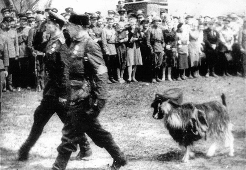 В рядах партизан шел и еще один очень необычный участник парада — козел по кличке Малыш. В 1943 году после разгрома немецкого гарнизона на станции Куренец партизанским отрядом «Борьба» из бригады «Народные мстители» среди прочих трофеев оказалось и исхудалое животное. Малыш стал не только всеобщим любимцем и талисманом, но и выполнял боевые задачи. Он не боялся ни шума техники, ни разрывов снарядов и всюду следовал за санинструктором, нося сумку с медикаментами.