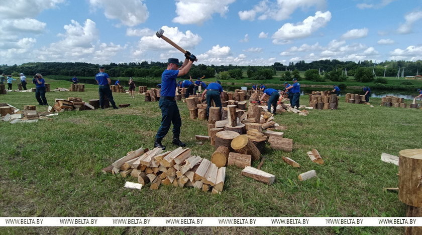 Спасатели за довольно короткий период справились с поставленной задачей, не прерываясь ни на минуту. Корреспондент БЕЛТА узнала, каково на такой жаре помахать топором хрупкой даме, пусть и привыкшей к неженской работе. «Тяжеловато, лет 20 не держала топор в руках. Раньше в деревне могла и порубить, когда нужно было, да и просто чтобы силы свои испытать. А теперь вижу, что это нелегкое занятие, отстаю от своих коллег, но надеюсь, что они мне помогут. Мне приятно встать рядом со спасателями и внести вклад в общее дело, так что я стараюсь. В таких мероприятиях спасатели и руководители региона показывают всей стране, что мы всегда будем поддержкой нашему Президенту и что мы к любому труду относимся с большим уважением», — поделилась впечатлениями официальный представитель областного УМЧС Софья Глинская.