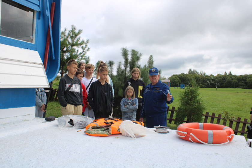 Была праведзена экскурсія на ратавальны пост, ратавальнікі Таварыства ратавання на вадзе паказалі прыёмы ратавання людзей, далі магчымасць паспрабаваць свае сілы ў кіданні ратавальнага круга. Работнікі фізкультурна-аздараўленчага цэнтра правялі для дзяцей спартыўна-гульнявую эстафету, у якой каманды ўзначалілі Максім Буруноў і Уладзіслаў Лімбак.