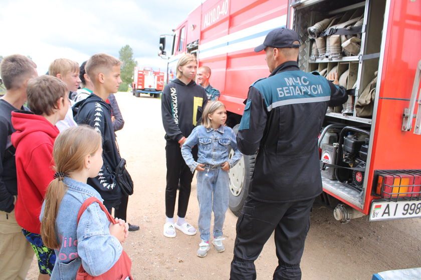 У канцы мерапрыемства прыехалі два пажарныя аўтамабілі, а супрацоўнікі райаддзела па надзвычайных сітуацыях пазнаёмілі прысутных з пажарнай і ратавальнай спецтэхнікай, расказалі аб рабоце і магчымасцях сучасных ратавальнікаў.
