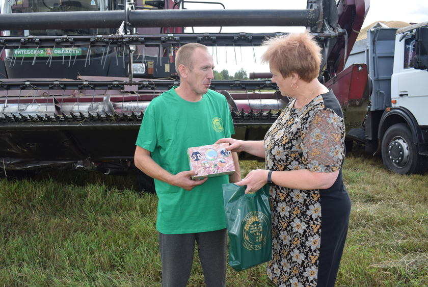Віталь Каропа быў задаволены прафсаюзнымі падарункамі і расказаў, што гаспадарка хутка ўжо заканчвае ўборку зерневых, бо на дапамогу прыехалі два механізатары з КУСГП «Ульскі».