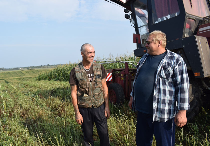На адвозцы сіласнай масы, якую закладваюць у Добрыне, заняты мясцовы механізатар Аляксандр Вяеўнік і Валерый Харкевіч з ААТ «Прыазёрны мір». «Мяне прыслалі дапамагчы калегам, бо не хапае трактароў на адвозцы, – заўважыў Валерый. – Дапамагу пару дзён – і назад у сваю гаспадарку, там жа таксама патрэбны МТЗ на адвозку кукурузы».