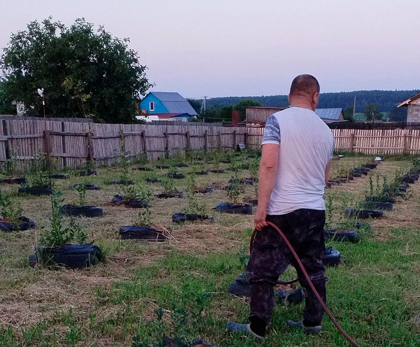 — Думаю, многие дачники будут осуждать наше решение, но для удобства будущей косьбы, пока кустики голубики совсем еще маленькие, мы установили на поверхность каждой ямы автомобильные покрышки. Конечно, когда растения немного подрастут и окрепнут, мы обязательно утилизируем старые шины. В эти самые конструкции высадили наши кусты, — рассказывает Елена и подчеркивает, что голубика — ягода не капризная. — Главное — правильно ее посадить, подкармливать и подкислять почву, а также обрезать старые и слабые ветки. Тогда она отблагодарит вас крупной и сладкой ягодой. Кстати, свой урожай мы уже успели попробовать — в этом сезоне сняли с веток немного первых ягод.