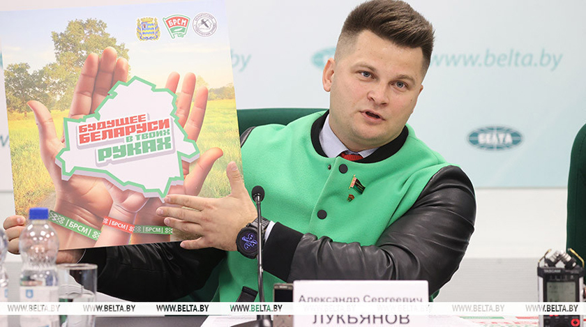 Новый арт-объект от молодежи, организаторов и участников «Марафона единства» появится в Молодечно. О его значении рассказал журналистам первый секретарь Центрального комитета БРСМ, член Совета Республики Национального собрания Республики Беларусь Александр Лукьянов на пресс-конференции об участии БРСМ в республиканской общественно-культурной акции «Марафон единства».