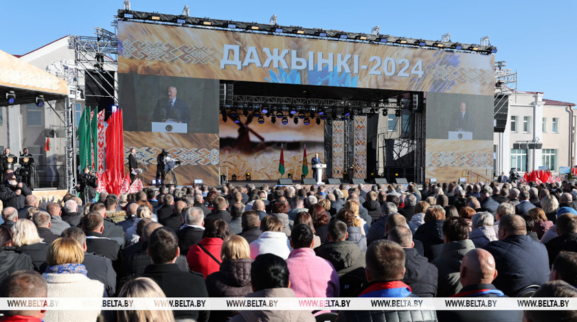 «От всего сердца благодарю всех, кто трудился на полях и животноводческих комплексах, в садах, на перерабатывающих агропромышленных предприятиях. Сегодня со сцены «Дажынак» я уверяю, что Беларусь, поставляющая продовольствие более чем в 100 стран мира, продолжит делать все, чтобы и у других народов были вкусные, качественные белорусские продукты и высокие урожаи. Мы это уже делаем», — заявил Александр Лукашенко.