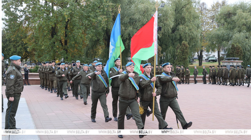 Командир 103-й Витебской отдельной гвардейской воздушно-десантной бригады Владимир Сафонов во время торжественной церемонии дал напутствие ребятам. «Сейчас вы стоите в этом десантном строю — окрепшие, подготовленные, настоящие гвардейцы-десантники. Все, что возможно, в вас вложили ваши командиры, подготовили вас по военным специальностям. Я уверен, что в дальнейшем навыки, которые вы здесь получили, работа в сплоченном коллективе помогут вам и в дальнейшем, в выбранном направлении для развития во благо нашей республики. Всегда помните о службе в нашем прославленном соединении, о тех героях, которые, не жалея жизни, пали на полях сражения, защищая нашу Родину, чтобы вы находились под мирным небом. Бывших десантников не бывает, это большая ответственность, которая на вас легла и будет сопровождать вас всю жизнь. Помните, что десантник всегда был образцом. В гражданской жизни выполняйте задачи с полной отдачей. Желаю, чтобы все стоящие здесь в строю нашли свое место в жизни», — подчеркнул командир соединения.