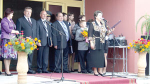 Уладзімір Пятровіч, у прыватнасці, прызнаўся, што для яго асабіста 1 верасня і дагэтуль шчымлівы і хвалюючы дзень. Кіраўнік раёна падзякаваў былому дырэктару школы Сямёнаву М. З. за шматгадовую плённую работу, уручыў яму Ганаровую грамату райвыканкама, пасля чаго павіншаваў прысутных з Днём ведаў, пажадаў усім здароўя, поспехаў, стараннасці.