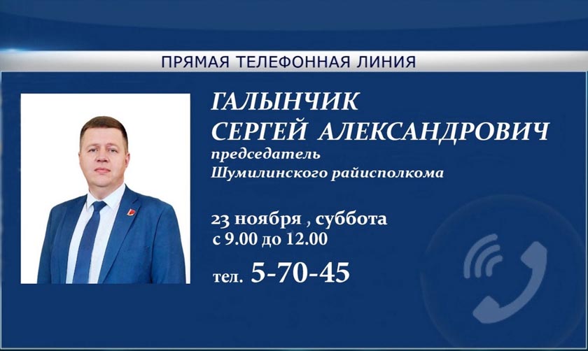 23 ноября, в субботу, прямую линию проведёт председатель Шумилинского райисполкома