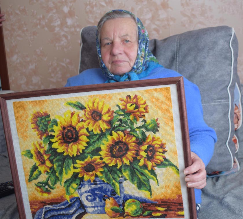 Карціны, якія вышывае Лілія Марчанка, прыгожыя, арыгінальныя, з адмысловымі ўзорамі. Мы сустрэліся з жанчынай, і яна расказала, што ў маладосці, як і ўсе яе равесніцы, вышывала гладдзю навалачкі, падузорнікі, ручнікі. Калі працавала ў мясцовым сельгаспрадпрыемстве бухгалтарам, то не было калі заняцца любімай справай. Вярнулася да яе гады тры таму, будучы на заслужаным адпачынку. Падахвоціла дачка Алена, якая на той час працавала ў школе, займалася вышыўкай. Вядома, рукі Ліліі Ягораўны ўспомнілі любімы занятак, больш таго – асвоілі алмазную вышыўку. Адна за адной пачалі з’яўляцца вышытыя карціны, аздобленыя рамкамі. Цяпер іх больш за дваццаць. Сярод любімых – “Сланечнік”, “Царква”, “Анёл”, “Тры мядзведзі” і іншыя. «Захапленне вышыўкай заспакойвае, дае сілы і ўпэўненасць, – кажа Лілія Ягораўна. – Калі вышываю, то не лезуць у галаву дрэнныя думкі і я адчуваю сябе на пазітыве».