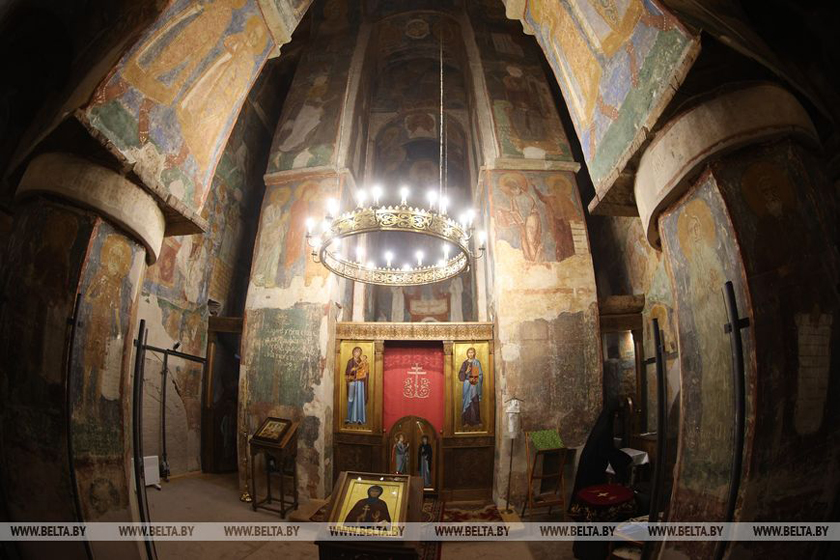 Величественный храм является одним из древнейших каменных культовых сооружений на территории Беларуси. При реставрации монументальной живописи здесь обнаружили множество фресок, датированных XII веком, которые покрывают 90% стен. Над их раскрытием несколько лет трудились лучшие реставраторы из Беларуси и России.