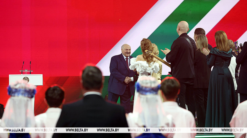 «И знаете, я не великий учитель, оценщик всех этих ваших действий и этого действа, но немножко в этом что-то понимаю. Скажу откровенно: такого в Беларуси за годы независимости я еще не видел. Вы всем показали, что мы можем творить на мировом уровне. Вы всем постсоветским республикам — что меня радует — показали, в каком направлении надо двигаться, развиваться. Может, кому-то было скучновато в каких-то номерах, но вы должны понимать, что здесь от маленькой девчушки, мальчонки до убеленных сединой оперных артистов сошлись на этой сцене. Это непросто — всех собрать и организовать. Но вы это сделали. Спасибо!» — поблагодарил Президент организаторов акции.