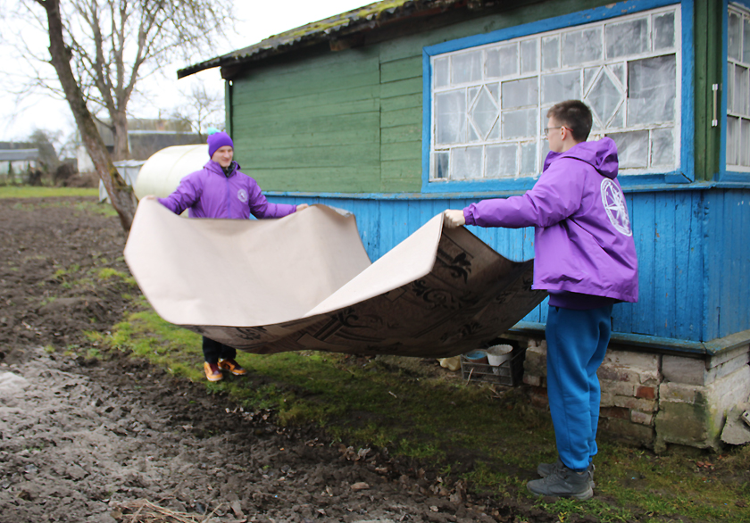 Другая частка студатрада адправілася на дапамогу адзінокім сталым жыхаркам райцэнтра Л. І. Сталіцынай і З. С. Марозавай. Маладыя людзі актыўна ўключыліся ў работу: выкалацілі ад пылу дываны і палавікі, памылі падлогу, насеклі шчапы, прыбраліся ў дрывотніку… Удзячныя гаспадыні шчыра дзякавалі за дапамогу.