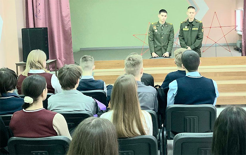 На днях у СШ № 2 г. п. Шуміліна пабывалі курсанты ваенна-тэхнічнага факультэта БНТУ Сяргей Сабалеўскі і Уладзіслаў Зубараў. Курсанты завіталі ў школу падчас канікулярнага водпуску, каб расказаць старшакласнікам пра вучобу і ўніверсітэт.