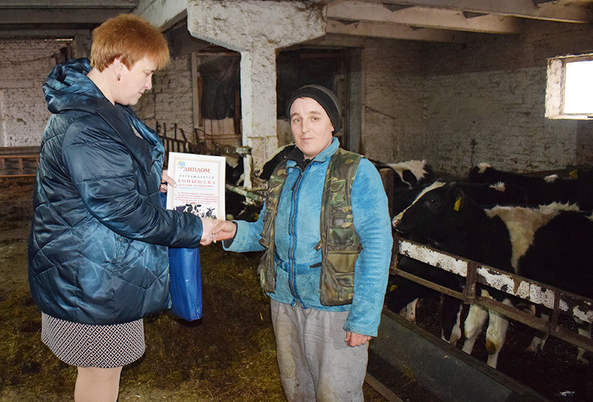 У раёне падведзены вынікі прафсаюзных спаборніцтваў па адкорме маладняку буйной рагатай жывёлы за люты. На днях старшыня райкама прафсаюза работнікаў АПК Вольга Пусянкова накіравалася на ферму Паратоўка КУСГП «Ульскі», каб уручыць дыплом і падарунак Наталлі Конышавай, у якой лепшыя вынікі па адкорме маладняку. – Сярэднясутачныя прывагі ў маёй групе цялят склалі за люты 538 грамаў, – расказала Наталля Леанідаўна. – Мая задача – карміць і даглядаць маладняк. Усяго ў маёй групе 108 цялят, 44 з іх – месячнага ўзросту. Выпойваю малаком, даю камбікорм, сена, сянаж.
