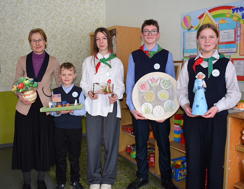 «Калі працавала настаўніцай матэматыкі, выкладала ў школе гурткі «Ізанітка”, “Вышыўка стужкамі” ад РЦДіМ. Але ўсё роўна мне было мала часу на захапленні. Цяпер працую ў групе падоўжанага дня, магу сабе дазволіць такую “раскошу”, – усміхаецца Таццяна Пятроўна. – Напрыканцы рабочага дня да мяне прыходзяць займацца прыкладна дзесяць дзетак, якія, як і я, апантаныя творчасцю. Мы лепім, выразаем, наклейваем, размалёўваем. Выкарыстоўваем пластылін, кардон, фанеру, фарбы, гіпс, шпаклёўку, прыродныя матэрыялы. Каб зрабіць падзелкі, спалучаем некалькі відаў творчасці: дэкупаж, фларыстыку, гіпсавую лепку, тэхніку тэра (матэрыял уціскаецца ў раствор, нанесены на аснову), батанічны барэльеф. Гэта ўсё карысна для дзяцей – яны вучацца быць цярплівымі, акуратнымі, пашыраюць свой кругагляд, што, несумненна, спатрэбіцца ў жыцці.