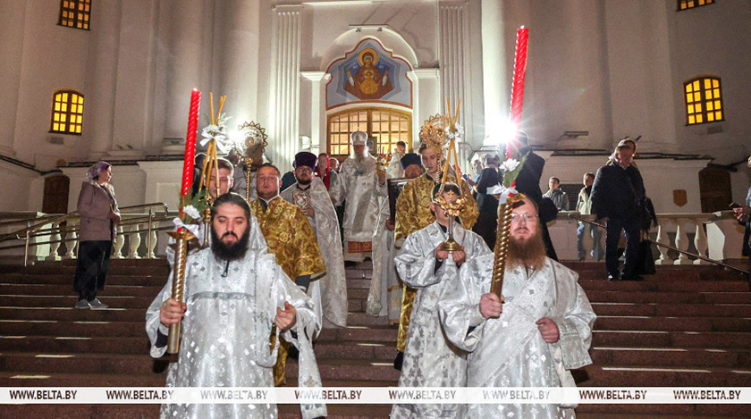 Крестный ход возглавил архиепископ Витебский и Оршанский Димитрий. Под звон колоколов шествие прошло вокруг храма. «Христос воскрес!» — провозгласил владыка. «Воистину воскрес!» — ответили верующие.