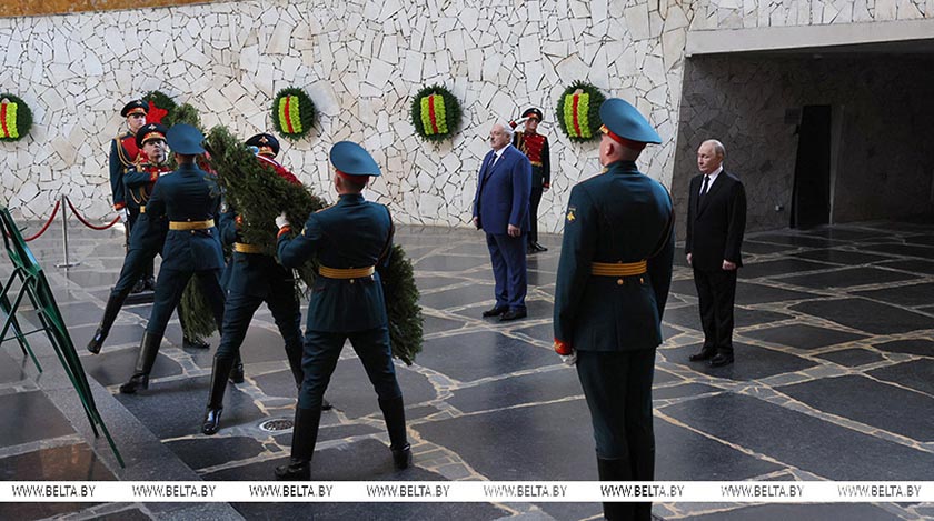 Александр Лукашенко начал визит с посещения вместе с Президентом России Владимиром Путиным самого знакового места в городе — историко-мемориального комплекса «Героям Сталинградской битвы» на Мамаевом кургане. Лидеры стран возложили венки в Зале Воинской славы и цветы к могиле маршала Советского Союза Василия Чуйкова — легендарного командующего 62-й армией, которая прославилась героической шестимесячной обороной Сталинграда.