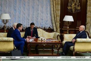 «Кстати, у нас завтра открывается выставка достижений белорусского государства за последние три-четыре десятилетия. Вы или ваша делегация можете посмотреть. Может, вас что-то заинтересует. Там сконцентрировано пусть не все, пусть сотая часть того, что мы можем делать, но это будет интересно для вашей страны. Знаю, что вы будете посещать ведущие наши предприятия, которые вас интересуют. Мы с большим удовольствием покажем вам новые образцы, которые производим там», — сказал Президент.
