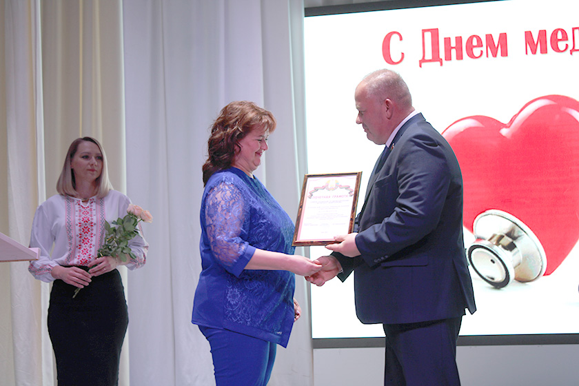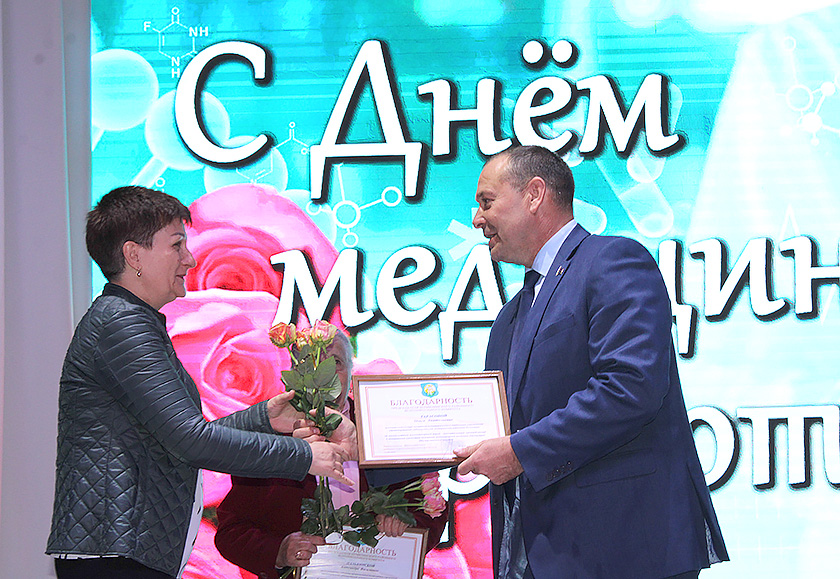 Председатель Шумилинского районного Совета депутатов Николай Будневич, начальник главного управления по здравоохранению Витебского облисполкома депутат областного Совета депутатов по Шумилинскому избирательному округу №52 Михаил Вишневецкий поздравили работников ЦРБ с профессиональным праздником и высказали слова признательности и благодарности. Грамоты и благодарности были вручены работникам больницы.