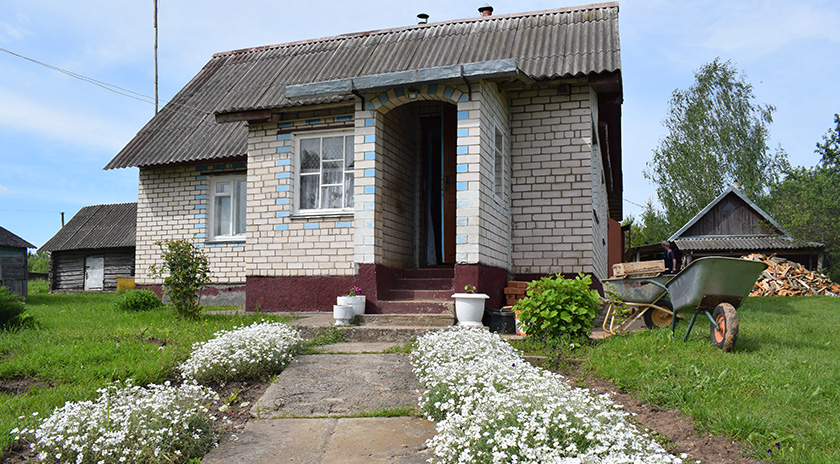 Разам з Наталляй Іванаўнай мы накіроўваемся па вёсцы. Усе дамы тут дагледжаныя, акуратныя. Прыдамавыя тэрыторыі абкошаны, многія хаты абкладзены сайдынгам, з прыгожай агароджай. Практычна каля кожнага падворка многа кветак.