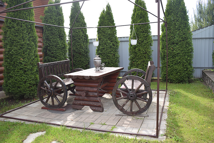 Фёдаравы пасадзілі за домам бярозы і сосны, прыбралі бераг возера, былы хляўчук перарабілі ў лазню, правялі электраацяпленне, пабудавалі альтанку, усталявалі арэлі, пасадзілі кветкі. На сцяне лазні зрабілі этнаграфічны куток – перанеслі сюды старыя рэчы былых гаспадароў. Тут можна ўбачыць драўляныя рубіла, хамут, крук для сена, граблі, прас на вуглях, маслабойку.