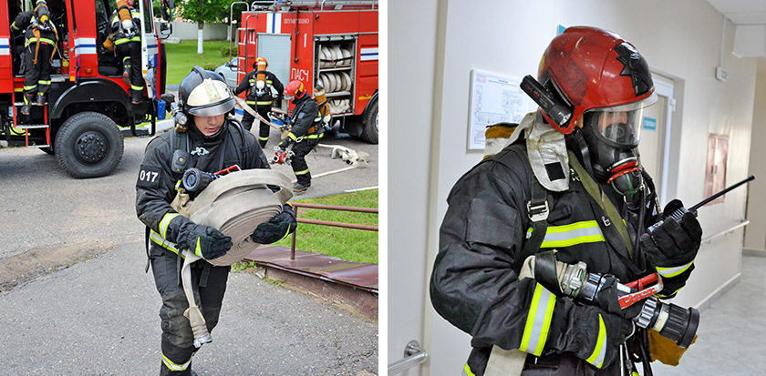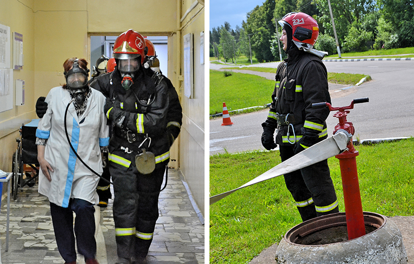 Атрымаўшы інфармацыю пра інцыдэнт, да месца здарэння выехала 5 баявых машын (першы аўтамабіль з’явіўся на тэрыторыі бальніцы праз 4 хвіліны), быў разгорнуты аператыўны штаб, які ўзначаліў начальнік раённага аддзела па надзвычайных сітуацыях Андрэй Сасновіч. Дзякуючы скаардынаваным і аператыўным дзеянням удзельнікаў трэніроўкі ўмоўны «пажар» быў ліквідаваны, ён не распаўсюдзіўся на іншыя паверхі, эвакуацыя «пацярпелых» была праведзена з трох умоўных месцаў.