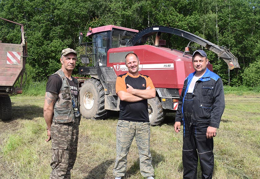 На думку механізатараў Мікалая Жыгунова і Валерыя Харкевіча, якія адвозяць здробненую масу да сянажнай траншэі, травы сёлета выраслі нядрэнныя. Асабліва ўрадзіла на тых участках, дзе была падсеяна канюшына. Калі з нарыхтоўкай сенажу хоць і не так хутка, як хацелася б, але спраўляюцца, то з сенам пакуль складана, бо амаль кожны дзень ідуць дажджы. Таму кіраўніцтва гаспадаркі мае на Валерый Харкевіч, Сяргей Гоманаў, Мікалай Жыгуноў мэце пазычыць у СУП “Лаўжанскае” на некалькі дзён прэс-падборшчык з вакуумнай плёнкай, каб нарыхтаваць сянаж. У плёнцы ён атрымліваецца вельмі карысным для жывёлы, бо захоўваюцца ўсе вітаміны.