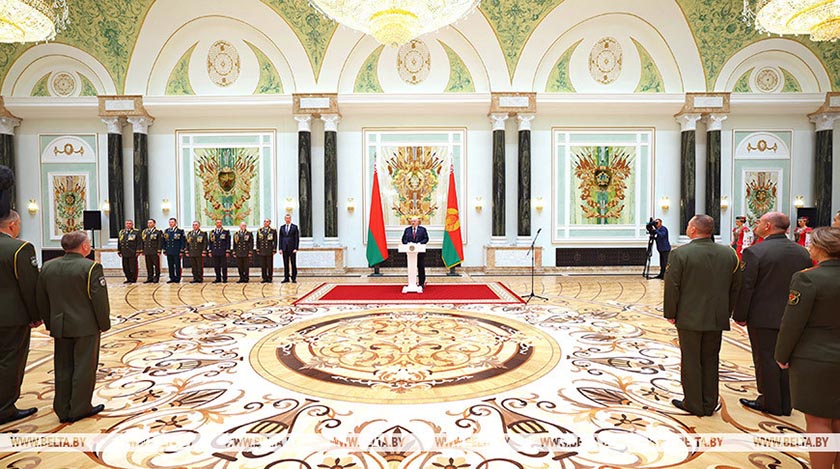 Он поздравил участников церемонии с успешным окончанием учебы и присвоением генеральских званий. «Защита Родины — труд нелегкий, но очень благородный, а люди в погонах в нашей стране всегда пользовались авторитетом и уважением у народа. Я верю в каждого из вас. Желаю всем крепкого здоровья, мира, семейного благополучия, больших успехов на новых должностях. В добрый путь, уважаемые офицеры», — сказал Александр Лукашенко.