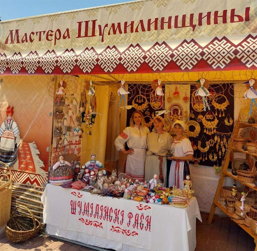 В фестивальном «Городе мастеров» открылась выставка-продажа сувенирной продукции мастеров Шумилинского дома ремёсел. Гости и участники Международного фестиваля искусств «Славянский базар в Витебске» могут приобрести изделия из соломки, ткани, лозы, керамики, сделанных шумилинскими ремесленниками в самых разных техниках.