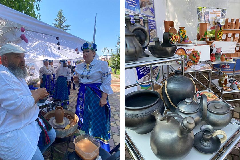В рамках представления регионального бренда Шумилинского района — «Обольский керамический завод» живой мастер-класс провёл известный мастер-гончар Александр Любимов из г.п. Оболь. Гости фестиваля смогли увидеть, как из комка глины рождаются керамические изделия. На отдельном стенде представлены изделия мастера, выполненные в его фирменном стиле «черной керамики».