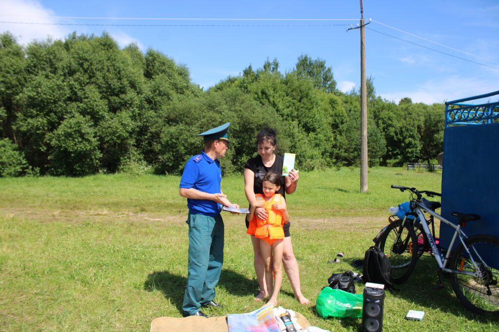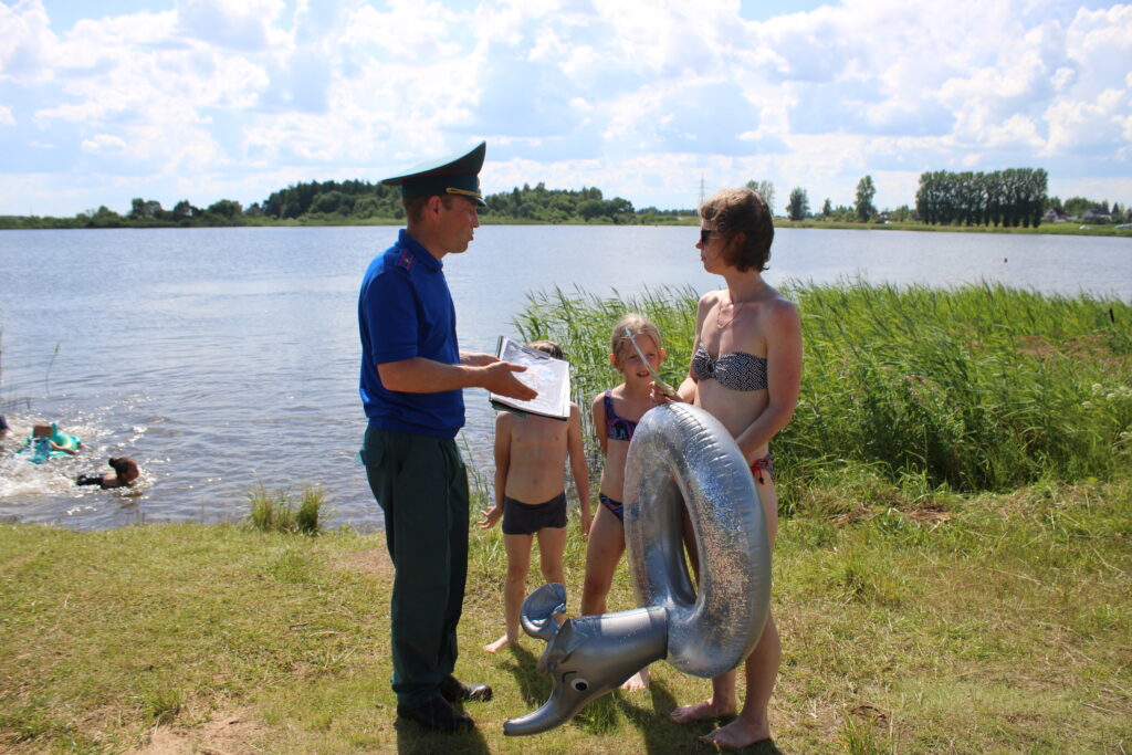 Інспектар РАНС Вадзім Півавараў нагадаў дзецям і дарослым, якія суправаджалі дзяцей, пра тое, што на пляжах забаронена пакідаць дзяцей ва ўзросце да 14 год без нагляду, а таксама забаронена купацца ў месцах для гэтага не прызначаных і не абсталяваных спецыяльнымі знакамі. Інспектар раздаваў адпачываючым памяткі па бяспечных паводзінах на вадаёмах.