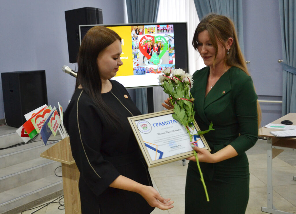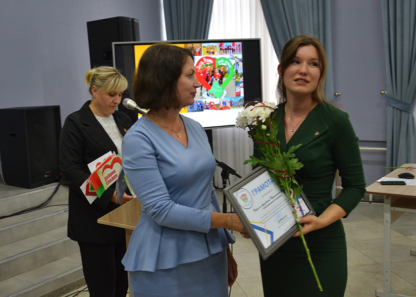 Вікторыя Бяляева ўручыла грамату райкама БРСМ аддзелу па адукацыі райвыканкама – за плённае супрацоўніцтва і Дар’і Шпакавай – за актыўную грамадзянскую пазіцыю.