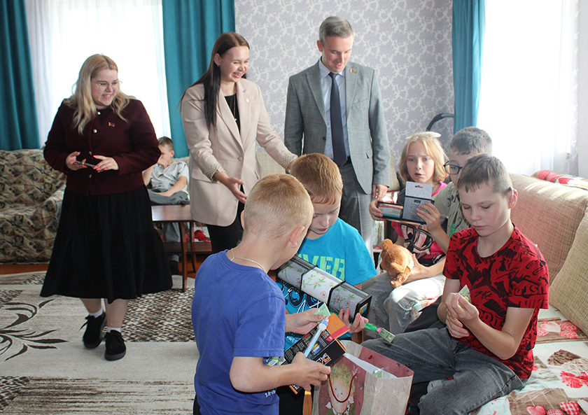 Глеб Лапіцкі прыняў удзел у рэспубліканскай дабрачыннай акцыі “Збяром дзяцей у школу!” і наведаў дзіцячы дом сямейнага тыпу ў Шуміліне. Дзеці правялі экскурсію па дому, падзяліліся сваімі планамі і марамі. Маці-выхавальніца Ірына Загвоздава расказала пра работу, пра дзяцей, для якіх яна стала мамай. Размова прадоўжылася падчас чаявання з яблычным пірагом, якім частавалі гасцей выхаванцы, і тортам, які прывезлі госці. Дзеці вельмі радаваліся падарункам, якія спатрэбяцца ў школе.