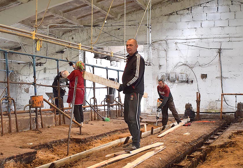 Ва ўсю ідзе рамонт на ферме Непароты ААТ «Прыазёрны мір». На жывёлагадоўчым аб’екце мы сустрэлі будаўнічую брыгаду сельгаспрадпрыемства. «Работы на ферме, дзе будзе стаяць дойны статак, нямала, – кажа рабочы Уладзімір Бедуленка. – Выйшла са строю апалубка, дзе размешчана сістэма гноевыдалення. Вось зараз яе і майструем, потым будзем падлогу пад ланцугамі заліваць цэментным растворам. Трэба адрамантаваць ляжанкі для кароў. Бачыце, тут была калісьці плітка, але выбілася, трэба зрабіць для жывёлы роўную пляцоўку. Кіраўніцтва гаспадаркі забяспечвае будаўнічым матэрыялам. Наперадзе – рамонт кармавых сталоў і даху».