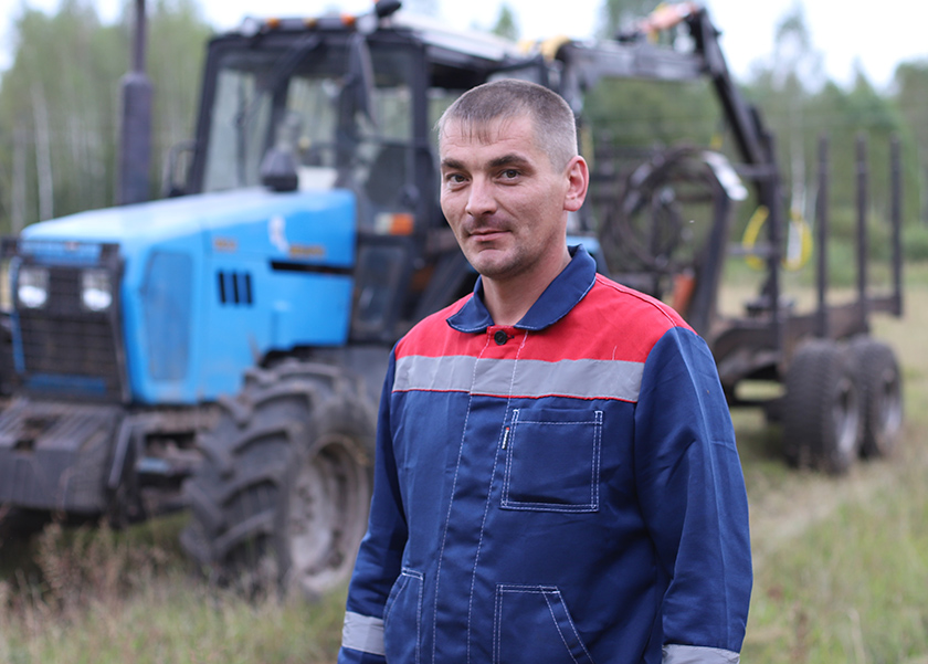 – Прыемна працаваць дома. Тым больш у родных мясцінах, дзе я нарадзіўся. За змену вывожу каля 80 кубаметраў драўніны. Пасля цяжкага працоўнага дня за шчасце вяртацца да дому, што чакаюць жонка і дочкі. Гэта яшчэ больш разумееш пасля працяглай камандзіроўкі ў Жлобінскі раён, калі бачыўся з сям’ёй рэдка.
