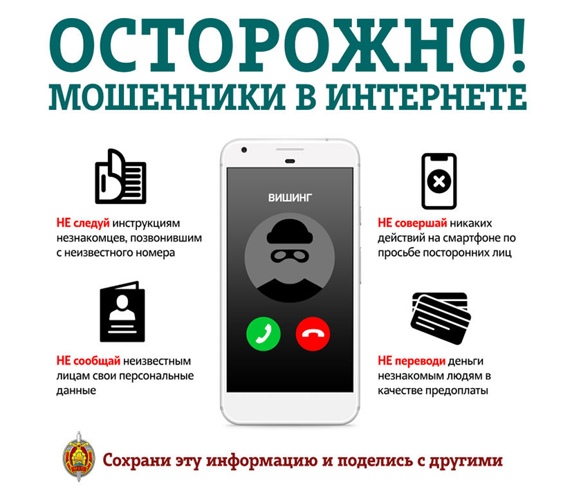 – Людзі, не вядзіцеся на розныя хітрасці тэлефонных злачынцаў, – звяртаецца да жыхароў раёна начальнік райаддзела Яўген Іваноў. – Запомніце: супрацоўнікі кампаній мабільнай сувязі (банкаў, пракуратуры, міліцыі і г. д.) ніколі не тэлефануюць на ватсап ці іншыя месенджары, ніколі не тэлефануюць з замежных нумароў. Убачыўшы невядомы нумар, проста не адказвайце на яго. Калі паднялі і пачулі, што неабходна перайсці па спасылцы ці перавесці грошы, або наогул даць свае персанальныя дадзеныя, адразу заканчвайце размову.