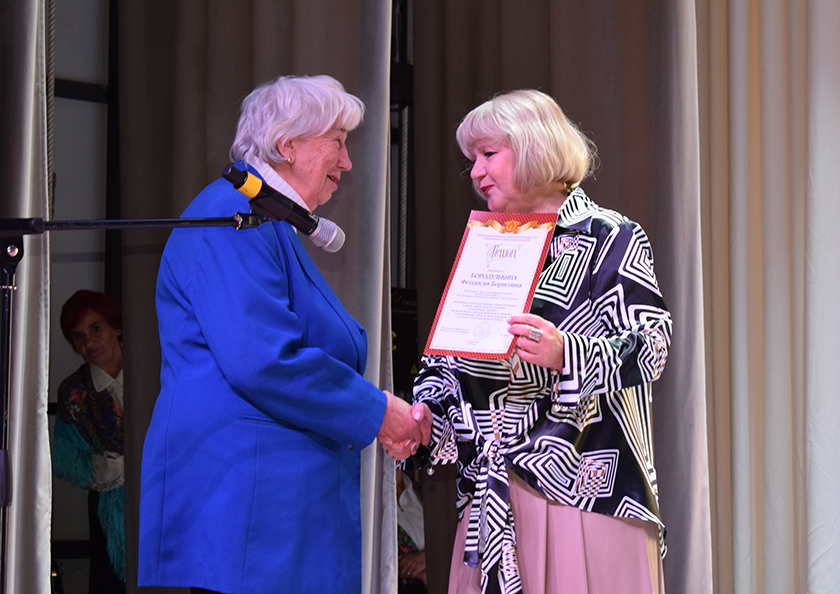 Пра пераемнасць пакаленняў, актыўнасць людзей залатога ўзросту гаварыла падчас віншавання старшыня раённай ветэранскай арганізацыі Таццяна Цэрах, яна ўручыла граматы актывістам і сацыяльным партнёрам.