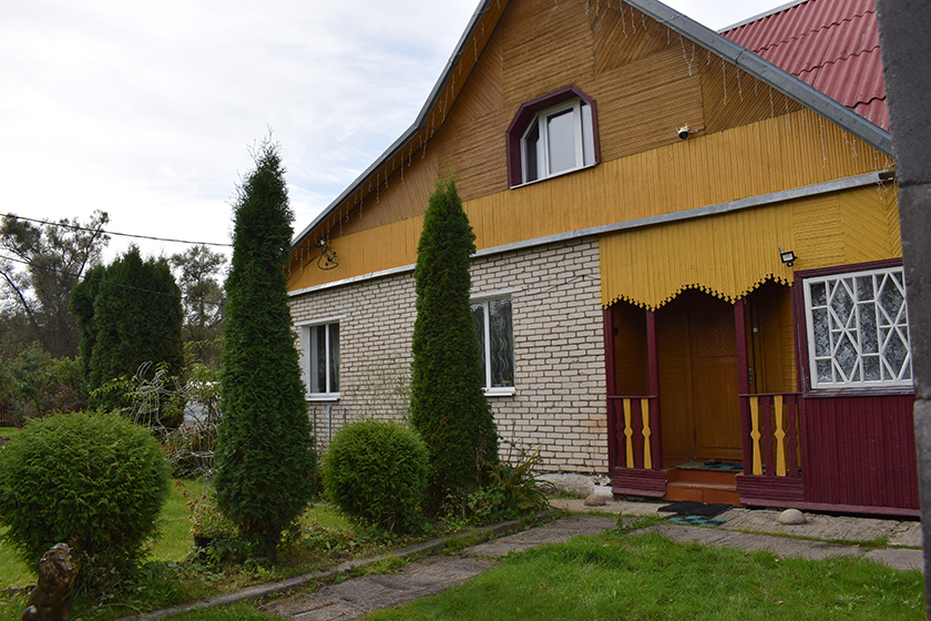 Дом Раісы і Пятра ВІКУЛАВЫХ у аграгарадку Мішневічы хаваецца за беластволымі бярозамі, зелянінай елак і соснаў, туй і ядлоўцаў. Ад мноства кветак вочы разбягаюцца. Якіх тут толькі няма: крокусы, рададэндраны, астры, вяргіні, петуніі, ружы… Побач з домам столік, лаўкі і арэлі, зробленыя гаспадаром, а таксама адлітыя з цэментнага раствору шары, пафарбаваныя ў белы колер. Падворак упрыгожваюць спірэя, вейгела і нават кедр. Вікулавы кожны год саджаюць дрэвы: сосны ці елкі, яблыні, грушы ці слівы. А гаспадар яшчэ майструе: зрабіў веснічкі, двое арэляў ля соснаў, на якія прыходзяць гушкацца суседскія дзеці. У планах – зрабіць вялікую альтанку, бо ў госці прыязджаюць пяцёра ўнукаў, дзеці.